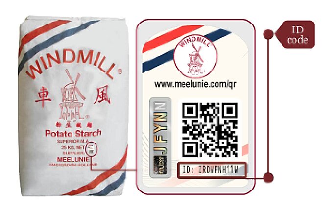 The solution chosen by Meelunie to protect its high quality Windmill products and brand image consists of a security label ‘tesa PrioSpot’ on each potato starch bag and an additional online tool - the ‘tesa connect & check’ platform. By scanning the QR code with a Smartphone or going on the website, distributors, resellers, customs officials and end-users can get information on how to confirm further proof points for the authenticity of the product.