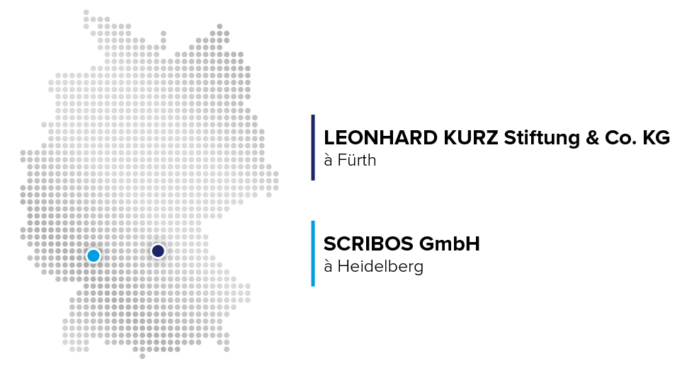 LEONHARD KURZ Stiftung & Co. KG à Fürth et SCRIBOS GmbH à Heidelberg : Ensemble, ils constituent le fondement de notre marque et travaillent main dans la main. Nous sommes également soutenus par un réseau international de filiales et d'équipes à travers le monde.