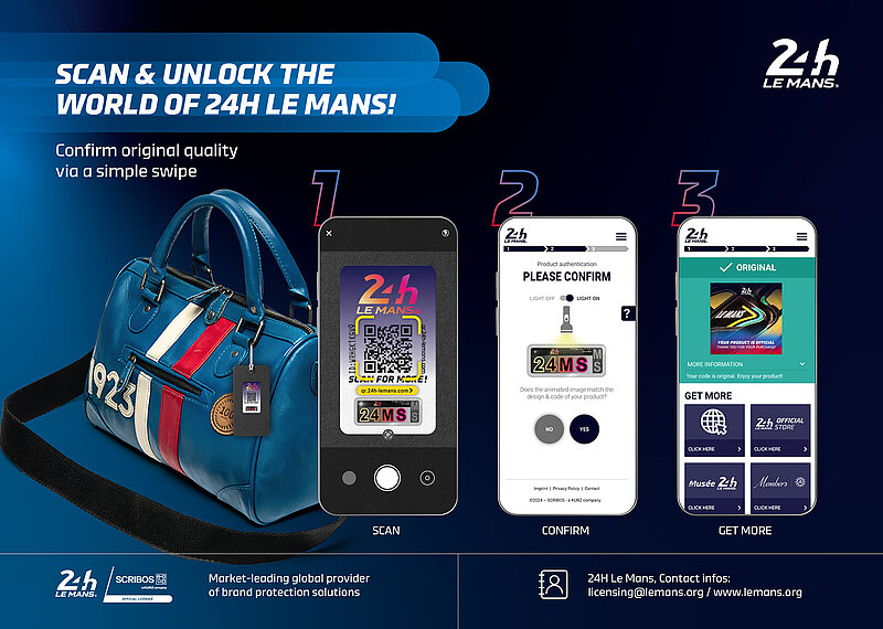 - 扫描后进入基于SCRIBOS 360平台的品牌专属数字体验,既能即时安全验证产品真伪,还有机会赢取勒芒24小时耐力赛主题的精美奖品