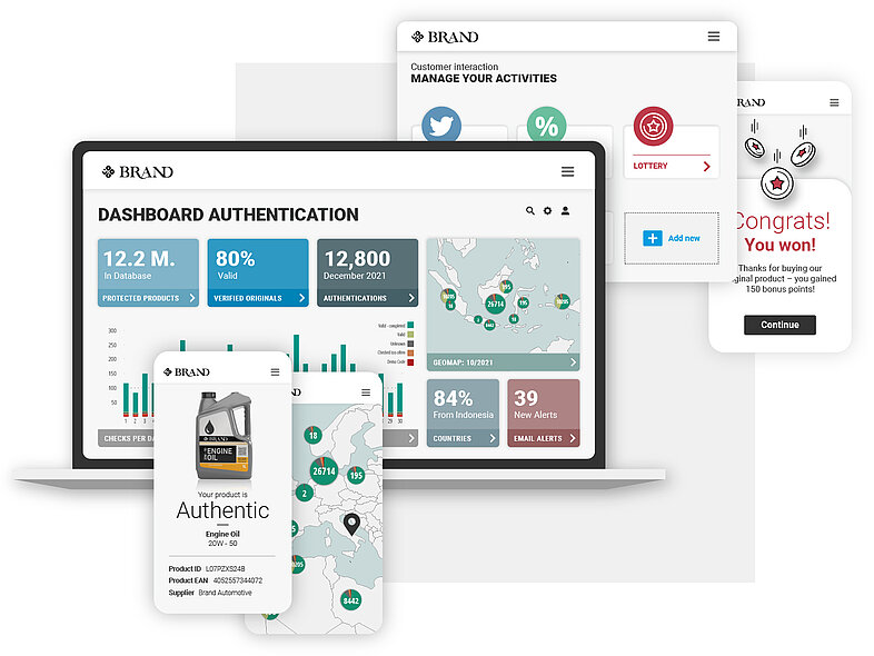 - Authentifizierung: Sofortige Produktprüfung per Smartphone, Erkennung von Fälschungsmustern und Analyse von Risikobereichen