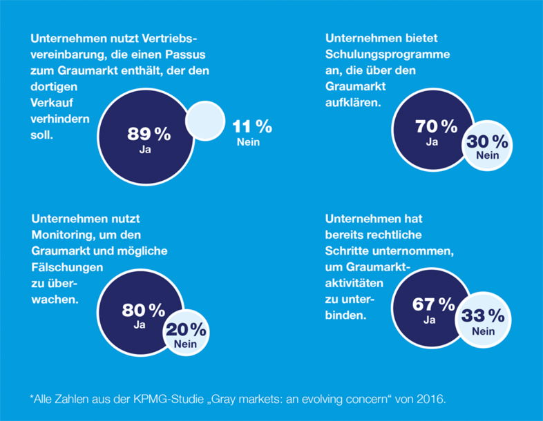 Weltweit werden im Jahr allein Technologieprodukte im Wert von ca. 60 Milliarden Dollar1 über nicht autorisierte Kanäle verkauft. Laut einer Studie von KPMG sehen mehr als 60 Prozent der befragten Unternehmen einen Anstieg der Graumarkt-Aktivitäten in den letzten Jahren und ganze 90 Prozent haben schon eigene Produkte auf dem Graumarkt entdeckt, die dort ohne ihre Zustimmung verkauft wurden.