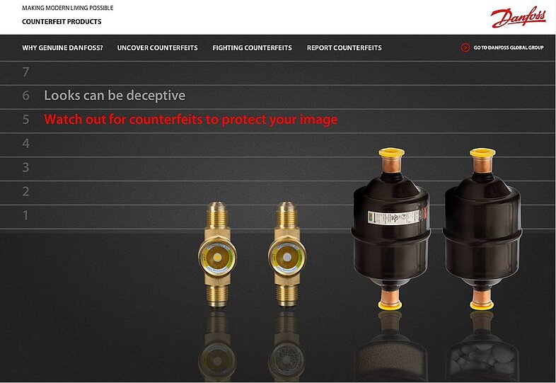 10.000 Filtertrockner mit gefälschtem Danfoss Logo in Dubai, ein Lager voll mit illegalen Kopien in Ägypten, Verfahren gegen Produktpiraten in China und Malaysia – die Liste der Vorfälle, mit denen sich Danfoss allein im letzten Jahr auseinandersetzen musste, ist lang. Die Gründe, warum besonders häufig Danfoss Filtertrockner von Produktpiraten ins Visier genommen werden, liegen auf der Hand: Sie sind bekannt für hohe Qualität und mit ihren Kopien lassen sich zuverlässig hohe Preise erzielen.