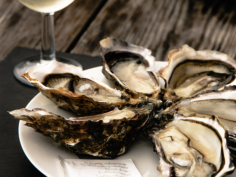 Thanks to this specific and unique production method, the oyster is refined by its time spent in the oyster beds. Increased shelf life out of water, superior organoleptic quality, natural colouring of the oyster's gills by a micro-algae, exceptional growth and flesh quality, all of these elements make Marennes Oléron PGI oysters a recognised and highly appreciated product throughout the world. The product range consists of four varieties: Fine de Claire, Spéciale de Claire, Fine de Claire Verte and Pousse en Claire; all PGI and the last two even having received the Label Rouge.