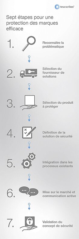 Les propriétaires de marque concernés peuvent activement protéger leurs clients et leur entreprise en mettant en place une solution de sécurité fiable. Adopter un concept de sécurité peut au début sembler coûteux en temps et en argent et pourtant, seulement sept étapes suffisent à la mise en place d’un concept de sécurité efficace.