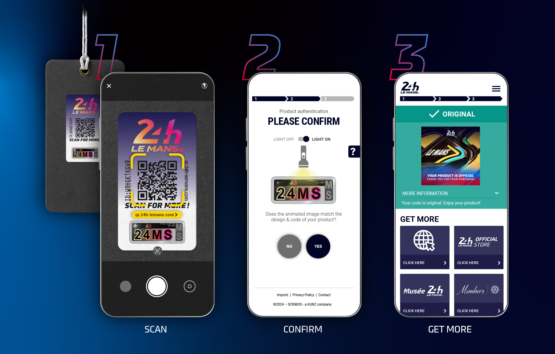 Derrière cette course emblématique se trouve l'Automobile Club de l'Ouest (ACO), l'organisme organisateur et propriétaire officiel de la célèbre marque 24H LE MANS et de son programme mondial de licences. Avec des millions de fans et des produits sous licence, vendus dans le monde entier, l'ACO était confronté au défi de protéger sa marque contre les menaces de contrefaçon, tout en garantissant le respect des licences et en renforçant l'engagement numérique. Pour atteindre ces objectifs, l'organisation s'est associée à la marque KURZ SCRIBOS afin de mettre en œuvre une solution sécurisée et interactive.