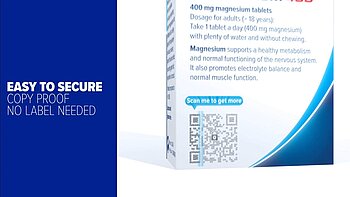 Le dispositif de sécurité s'intègre parfaitement au design de l'emballage et peut être imprimé directement avec celui-ci dans l'imprimerie du propriétaire de la marque. Aucun outil spécial ni aucune autre étape de production n'est nécessaire. L'étape de production supplémentaire pour la pose des étiquettes est supprimée. Cela facilite considérablement la mise en œuvre et le déploiement des produits du propriétaire de la marque dans le monde entier.