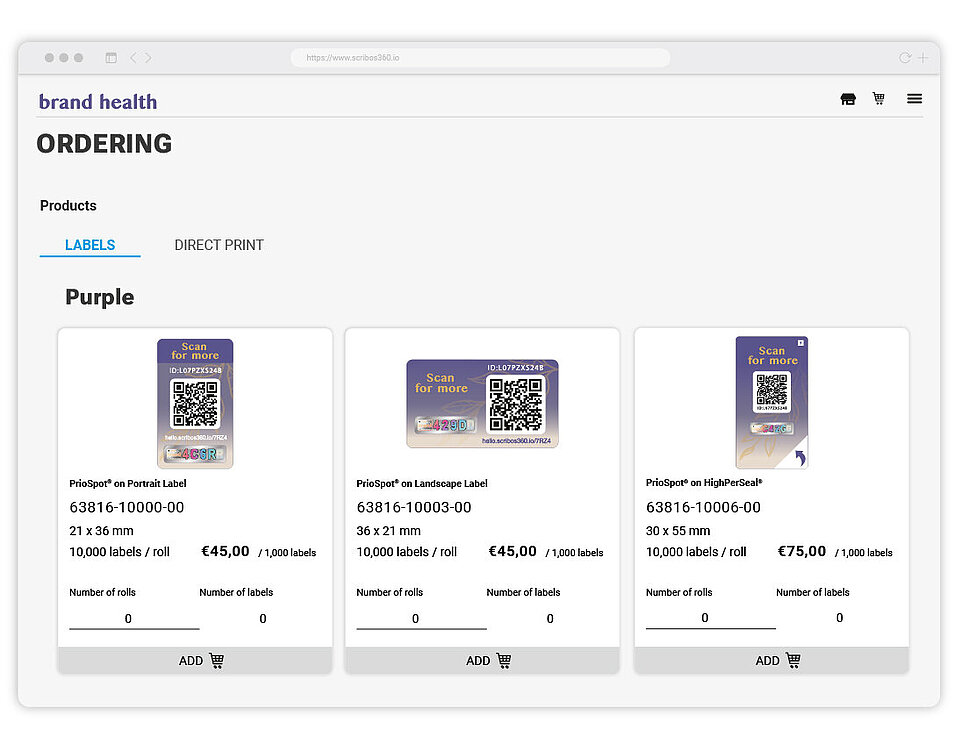 The B2B Ordering module enables brand owners to manage and control the distribution of security labels and product markings via one centralized platform. Verified suppliers, licensees, and production sites can place orders directly within the system, ensuring secure, compliant, and traceable access.