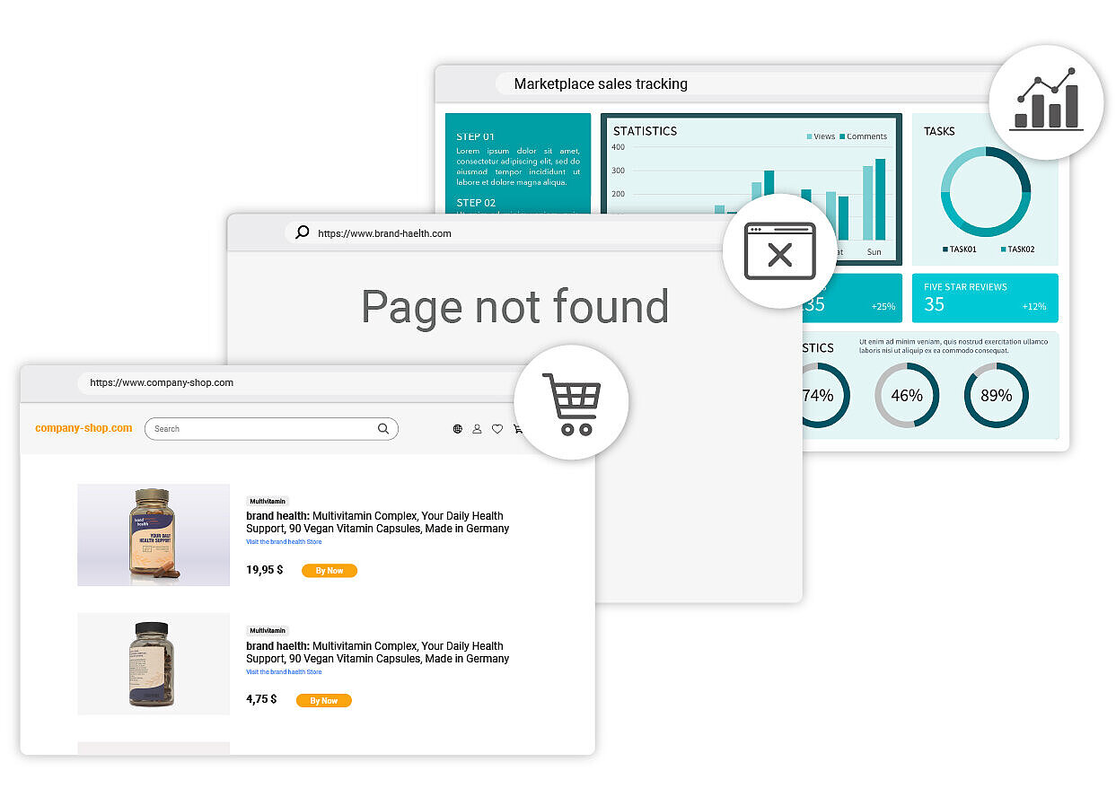 • Fast removal and takedown of counterfeit and gray market listings across major marketplaces